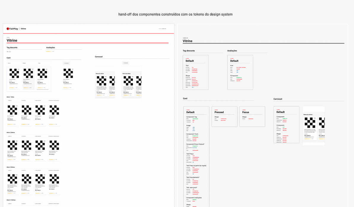 No squad de recomendação, nosso desafio era internalizar as vitrines de produtos para ganhar autonomia sobre o produto — tanto na análise de métricas quanto na evolução da interface. Aproveitei essa oportunidade para redesenhar os carrosséis, trazendo mais clareza visual, alinhamento com o design system e espaço otimizado para apresentar os produtos.